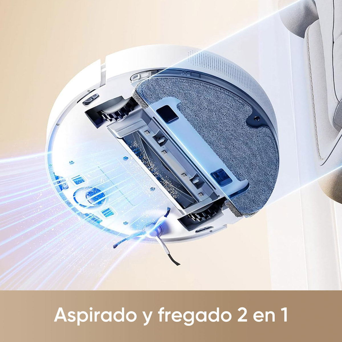 El Dreame D10 Plus Gen 2 no solo aspira, también friega. Su depósito de agua de 150 ml y tres niveles de flujo garantizan pisos limpios, sin marcas y libres de manchas.