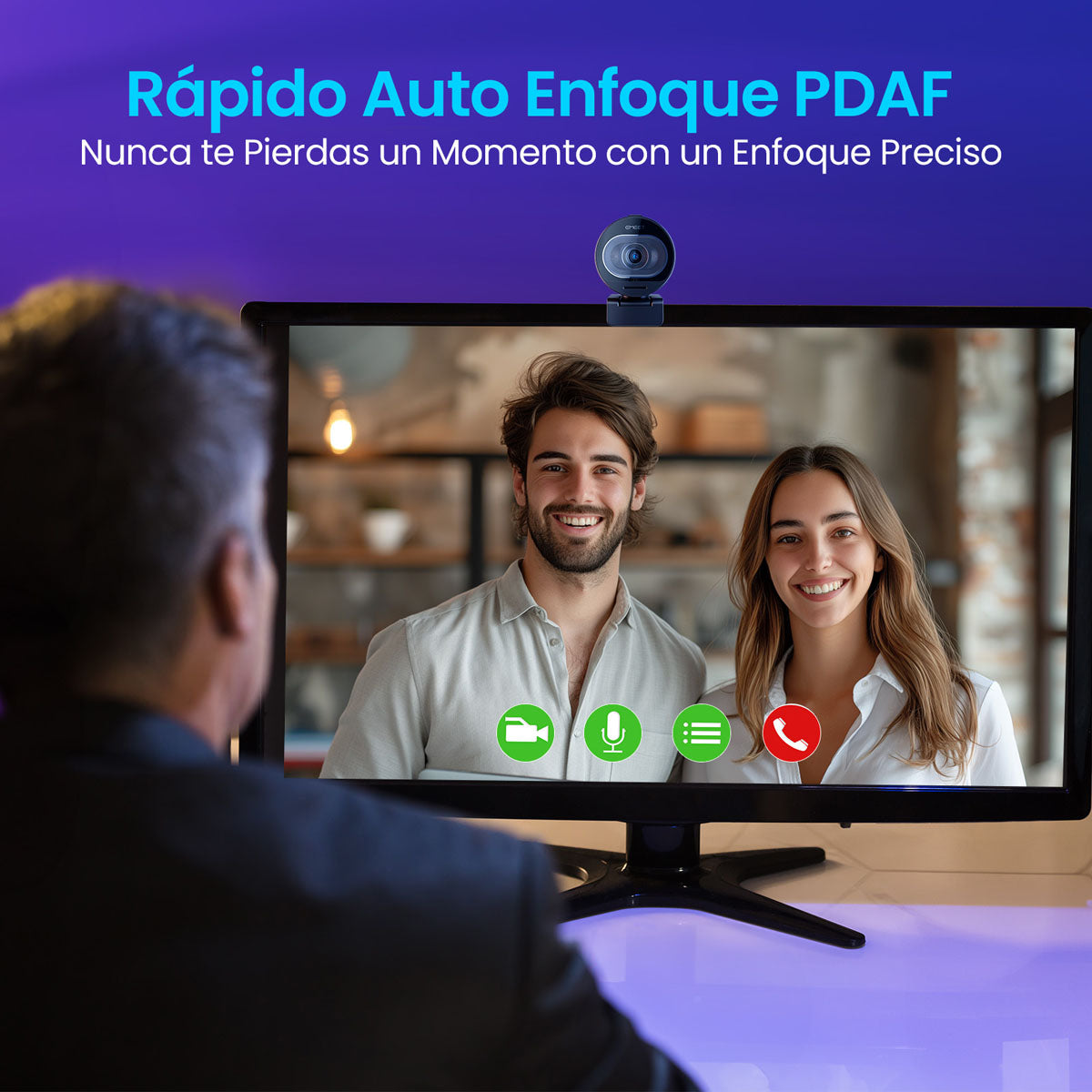 ENFOQUE AUTOMÁTICO PDAF AVANZADO Y BALANCE DE LUZ: La tecnología PDAF (enfoque automático de detección de fase) de la cámara web 4K S600 ofrece ventajas significativas sobre el enfoque automático común, como una velocidad más rápida, una mayor precisión y un rendimiento más estable en varias escenas.
