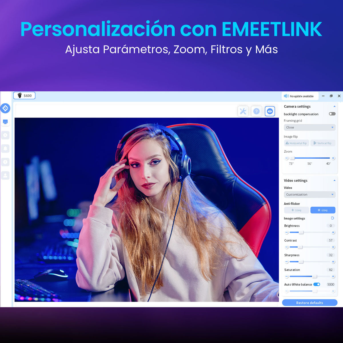 CONFIGURACIÓN SENCILLA CON OPCIÓN DE PERSONALIZACIÓN: L Para aquellos que buscan ajustar los parámetros de la imagen o mejorar la calidad del sonido, el software EMEETLINK está disponible para una personalización avanzada. Tanto la simplicidad como las necesidades avanzadas se pueden satisfacer sin esfuerzo.