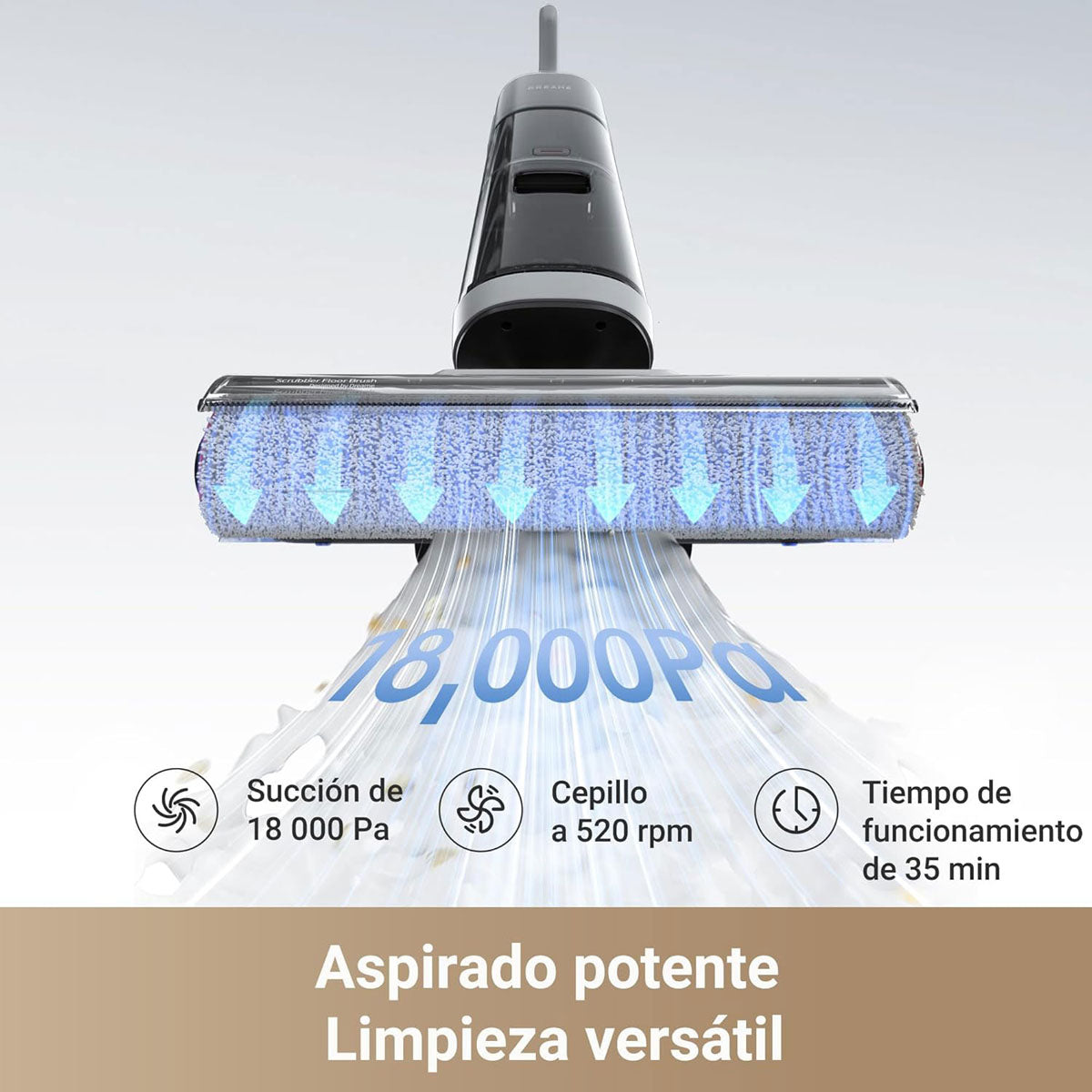 Con un motor de 14,000 rpm y 18,000 Pa de succión, la H14 aspira y friega a 520 rpm, removiendo suciedad difícil con menos pasadas. Perfecta para derrames, manchas y restos pegados.