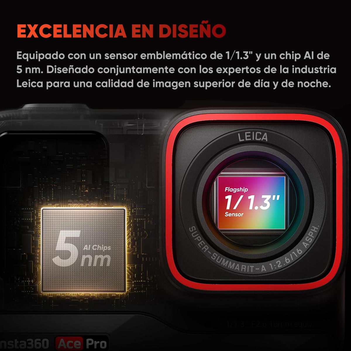Ace Pro es una cámara de acción de vanguardia equipada con un sensor emblemático de 1/1.3 pulgadas y un chip AI de 5 nm, que garantiza una captura de luz superior y un rendimiento optimizado mediante inteligencia artificial. La lente Leica SUMMARIT ofrece una calidad óptica excepcional para imágenes espectaculares en cualquier situación.