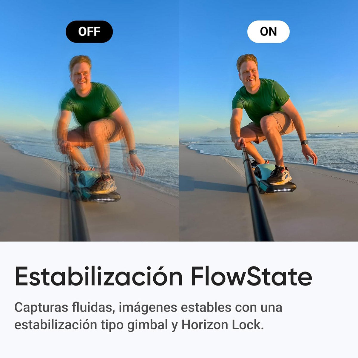 ESTABILIZACIÓN FLOWSTATE: La Estabilización FlowSatate y Horizon Block garantizan que sus tomas sean siempre suaves y niveladas, sin importar a qué lance GO.