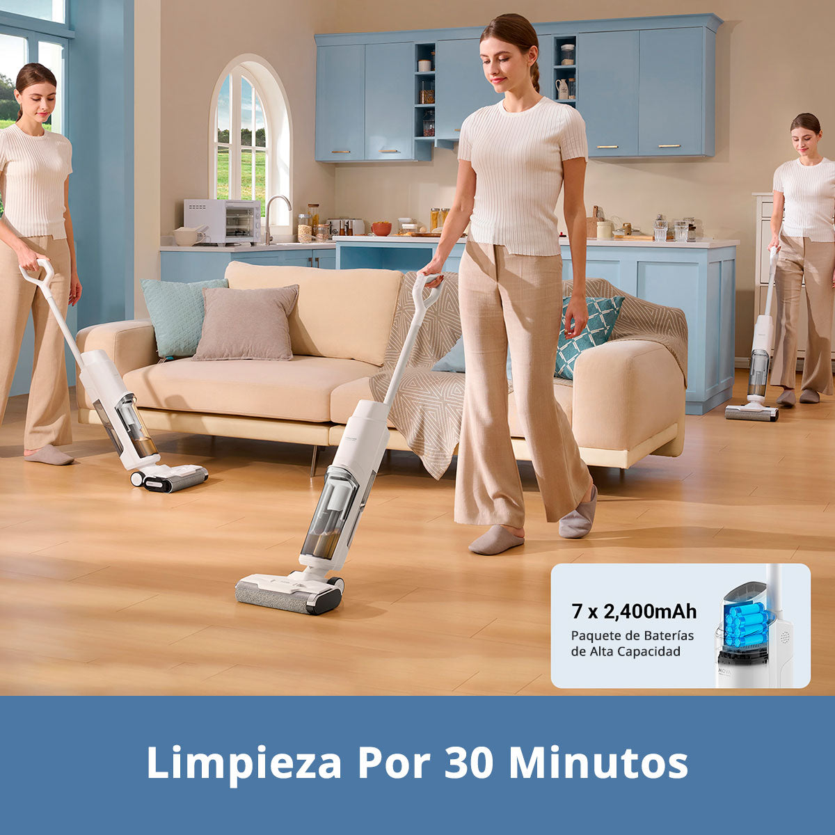 La K10 combina aspiración y trapeado en un solo paso para hacer tu rutina de limpieza más rápida y sencilla. Ligera, potente y fácil de maniobrar, es ideal para hogares que necesitan una solución práctica para suciedad seca y húmeda.