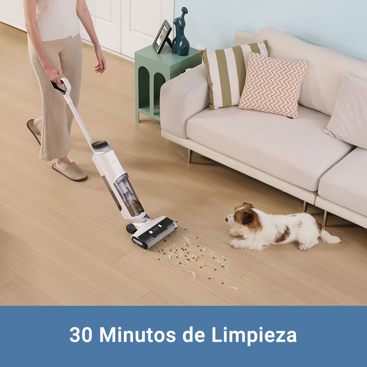 Su tanque de agua limpia de gran capacidad evita recargas constantes, mientras que su batería te da hasta 30 minutos de limpieza continua.
