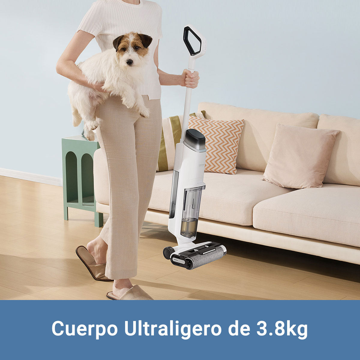 Su motor de 120,000 RPM y succión de 15 kPa permiten eliminar suciedad húmeda y seca en distintas superficies. La detección inteligente ajusta la potencia según la cantidad de desorden, optimizando energía y tiempos de limpieza.