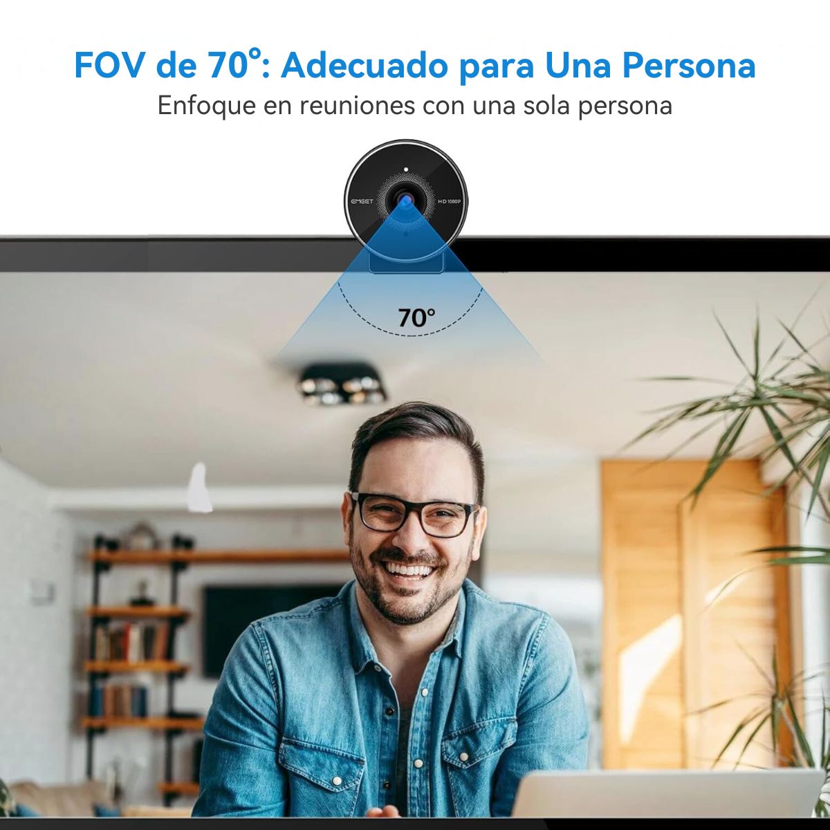 La C955 ofrece video 1080P con corrección automática de luz y un campo de visión optimizado de 70°, pensado para mantenerte al centro sin mostrar demasiado del entorno. Personaliza la imagen con EMEETLINK para lograr el estilo que prefieras.