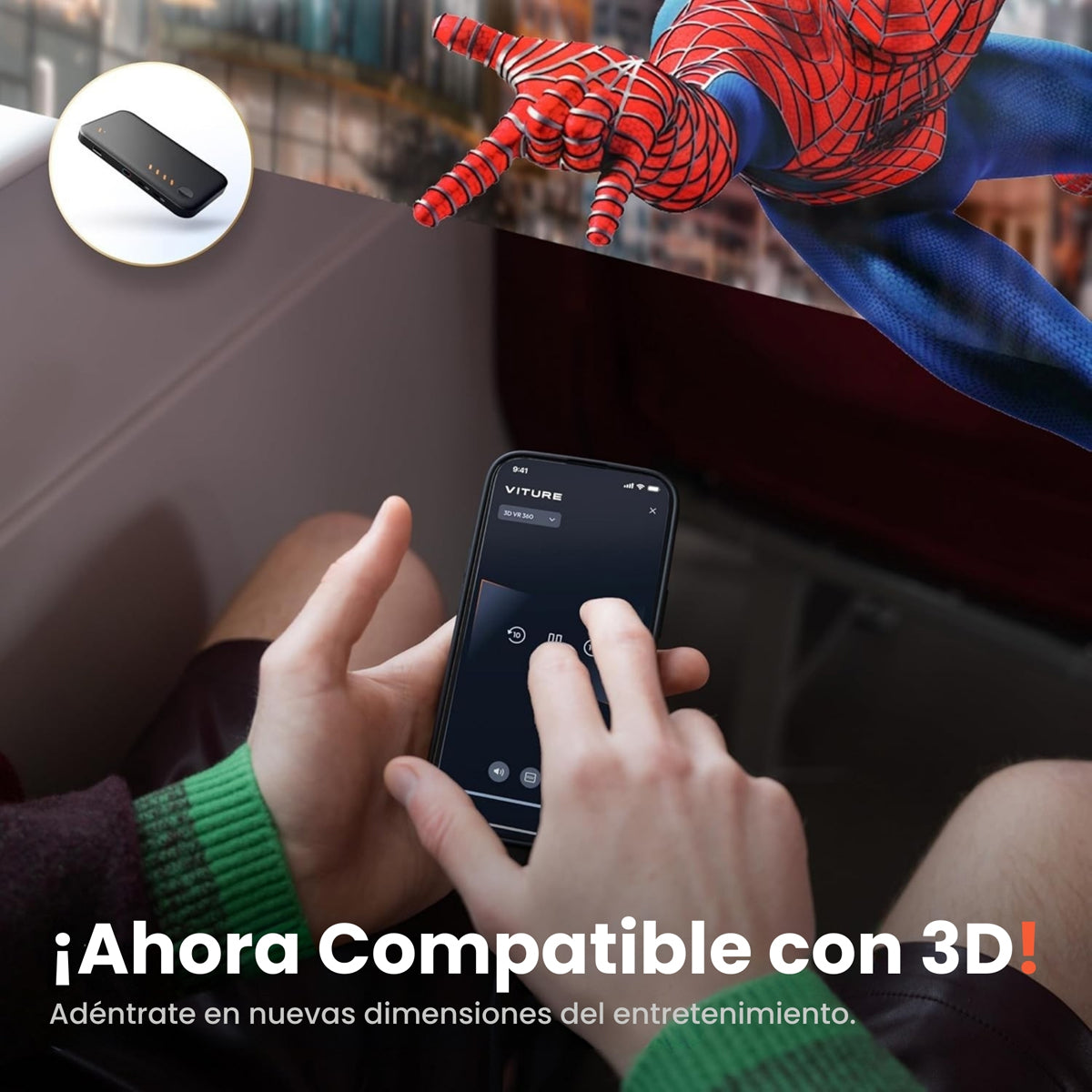 Lleva tu experiencia con Nintendo Switch al siguiente nivel con la base móvil VITURE Pro y los lentes XR. Disfruta de una pantalla virtual Full HD de 135” a 120Hz, ideal para juegos cooperativos como Mario Kart o películas en cualquier lugar. Conecta dos gafas XR o pantallas externas mediante HDMI o USB-C y accede a contenido 3D en una nueva dimensión. Juega por más tiempo gracias a su batería integrada que ofrece hasta 20 horas de uso. Asegúrate de actualizar el firmware según tu dispositivo para compatibilidad total. Descripción larga El VITURE Pro Mobile Dock es un accesorio imprescindible para extender tu tiempo de juego y es el único dispositivo capaz de compartir cualquier dispositivo HDMI o USB-C en XR, incluyendo Nintendo Switch y Switch 2, dispositivos y consolas HDMI para TV, y la mayoría de los smartphones USB-C. Delgado y elegante, el Pro Mobile Dock es compatible con contenido 3D, ofrece una duración de la batería de hasta 20 horas en algunos dispositivos e incluso es compatible con pantallas externas USB-C. Hecho con el interruptor en mente: Una pantalla virtual UltraClarity de 135" Full HD / 120Hz supera a una pantalla de 6.2" 720p / 30fps cualquier día. ¡Lleva tu experiencia portátil Switch al siguiente nivel con los lentes VITURE Pro XR y la base móvil VITURE Pro más delgada y rediseñada! Duplica la diversión, ¡Comparte la pantalla con amigos!: ¡Duplica la diversión con el ÚNICO sistema XR que admite compartir pantalla! ¡Juega juegos cooperativos locales como Super Smash Bros y Mario Kart o disfruta de una noche de cine juntos en XR en cualquier lugar y en cualquier momento! Conecta dos gafas XR o incluso pantallas USB-C externas al mismo dispositivo con la base móvil VITURE Pro. ¡Es como ir al teatro, pero sin los asientos pegajosos! Compatible con 3d: una nueva dimensión de entretenimiento: El VITURE Pro Mobile Dock ahora admite contenido 3D, disfruta de sus obras maestras cinematográficas tridimensionales favoritas en su pantalla XR favorita. Compatibilidad full HDMI y USB-C: Computadoras, consolas de juegos y accesorios Xbox, teléfonos inteligentes, dispositivos de TV, ¡lo que sea! Si es compatible con la salida de vídeo por HDMI o USB-C, puedes compartirlo en XR con el VITURE Pro Mobile Dock. Mayor duración de la batería: Disfruta de horas de juego adicionales con las reservas de energía integradas de VITURE Pro Mobile Dock (¡8 horas adicionales en Switch, hasta 20 horas en dispositivos de TV HDMI y teléfonos inteligentes!). Recordatorio para compatibilidad: Para una experiencia XR inmersiva con Switch 2, actualiza el firmware de tu Mobile Dock a la versión 20250613. Para la compatibilidad de XR con Switch, vuelve a la versión 20240827. Para una experiencia XR con Steam Deck, actualiza a la última versión de firmware.